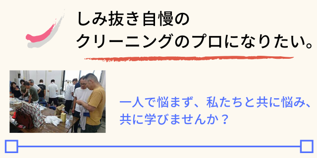 関西洗匠会は、「クリーニング業界全体をよくしていきたい」という想いを持って活動しており、クリーニング技術やシミ抜きの技を学ぶ事ができる場です。